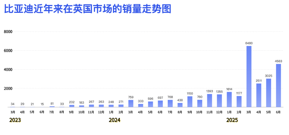 尽管面临如此挑战,中国汽车品牌在英国市场的表现依然亮眼。它们正加速开拓英国市场,凭借卓越的产品力和技术创新实现快速增长,其中比亚迪、名爵、奇瑞和零跑的表现尤为突出。以比亚迪为例,今年 6 月在英国市场创下 4583 辆的销量纪录,同比激增 557.5%,成为增速最快的汽车品牌。名爵作为英国市场的先行者,凭借成熟的品牌认知度稳居中国品牌销量榜首。