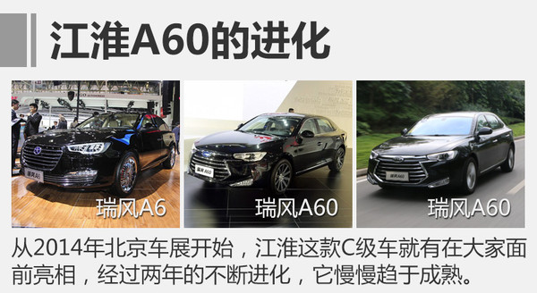 瑞风A60实际在2014年北京车展就有亮相,当时相貌和A6L非常相似,名字更直接,索性就叫A6,而到年末的广州车展则增加了一定的原创性,名称也多加了一“环儿”,为A60。而时隔一年,A60在细节部分更加细化,在不断的完善过程中,也汲取良好的意见,而A60的最终版,确实比前两次亮相更显精致。
