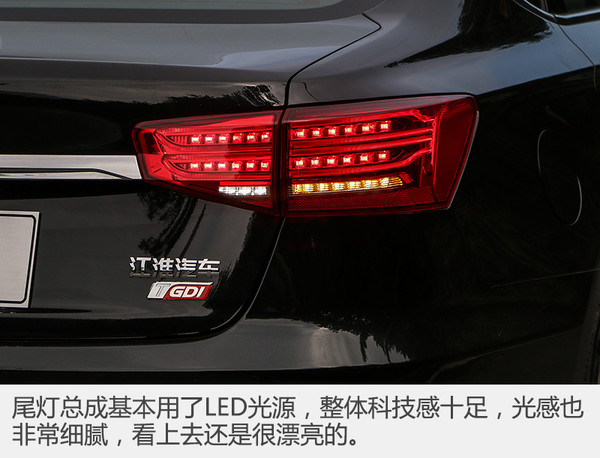 江淮A60的前脸经过重新设计后,第一眼看上去已经大体脱离了A6L的相貌,尤其以江淮 “宝瓶口”命名的家族化前脸,在造型方面更有气魄,每个线条拐角也抑扬顿挫。车标为黑底银字的圆形LOGO,要比去年广州车展的蓝底车标洋气顺眼不少。当然从车灯上还是能看出借鉴了A6L的设计。