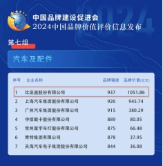 中国品牌价值评价信息发布 比亚迪位列汽车及配件领域第一